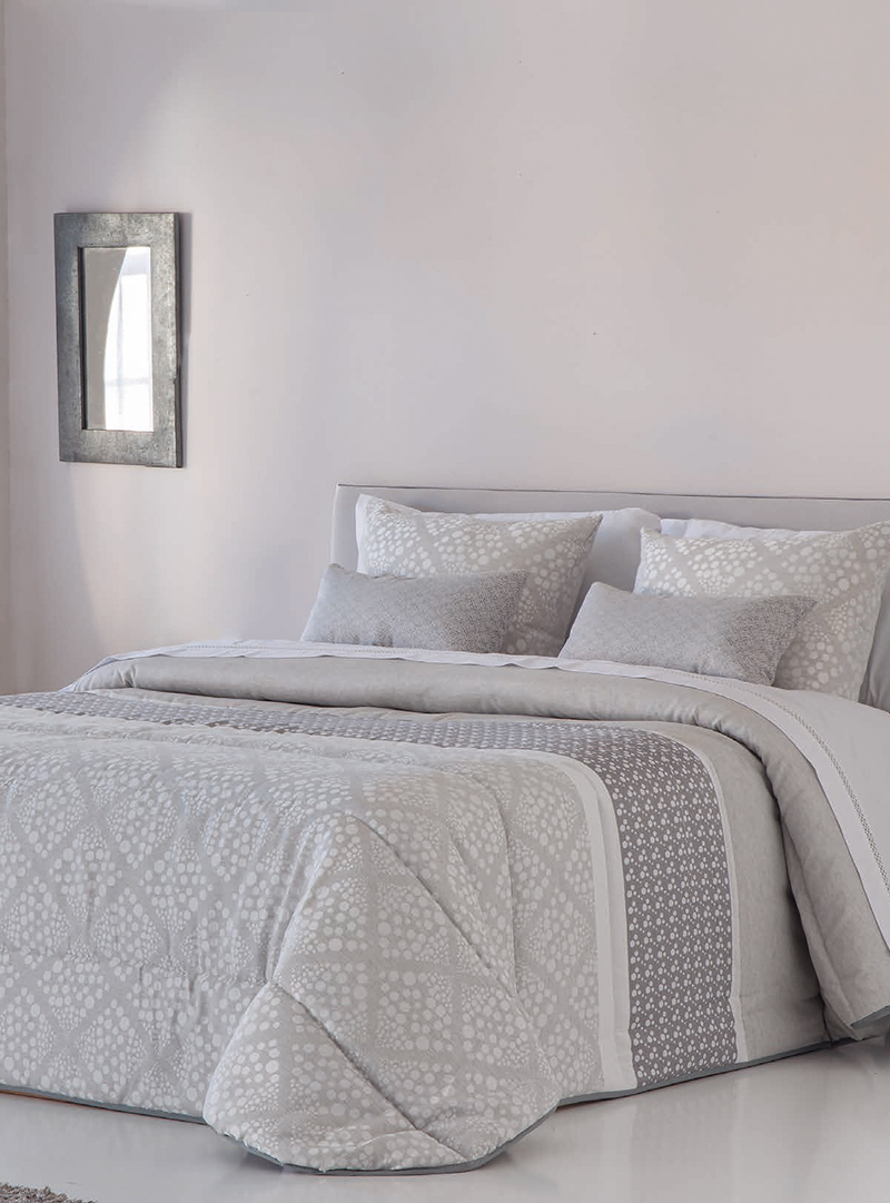 Este conforter edredón de la SERIE ELEGANCE crea un estilo propio con sus sutiles detalles en relieves, colorido y calidad de tejidos.